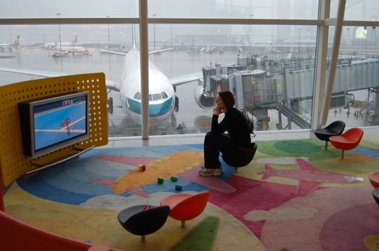 Katy your hotel room looks great,time to relax for a moment,before the vacation tours. The airport looks interesting,but are you sure, you are not in the Kid’s play section,the chairs look very small to sit in. Enjoy the up comming vacation. Dad.