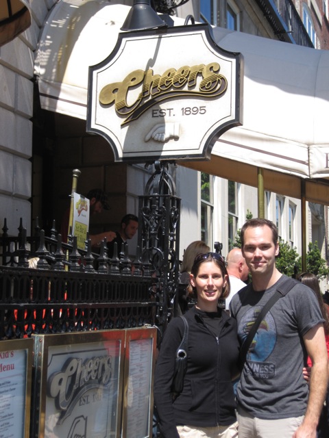 Faneuil Hall is also only a short walk to the wharf where, after talking to several of the many similar trolley companies, we finally figured out which one was ours. With the help of the trolley, we got a quick look at many of the Boston sights we didn’t plan on seeing in great detail: Fenway Park, MIT, Harvard, Chinatown. It was when we saw Cheers that we decided it was time to “hop-off”. I didn’t realize before we went to Boston that the outside of Cheers that you see on the tv show isn’t the same bar that they use for the inside. From the way the trolley driver talked about it, this is both shocking and appalling to many first time visitors. I can’t say any of our group was all that upset, we were only interested, mildly at that, in seeing the sign on the outside. Personally, I always thought the inside looked a lot like every other pub.