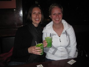 We took a table near the front and I headed to the bar to get drinks. On the bar was a giant neon green vat of liquid. When I asked what it was, I was told that it was free and “only for the ladies”. A second try at what was met only with a reminder that it was “only for the ladies”. So, the ladies each got a mystery drink.