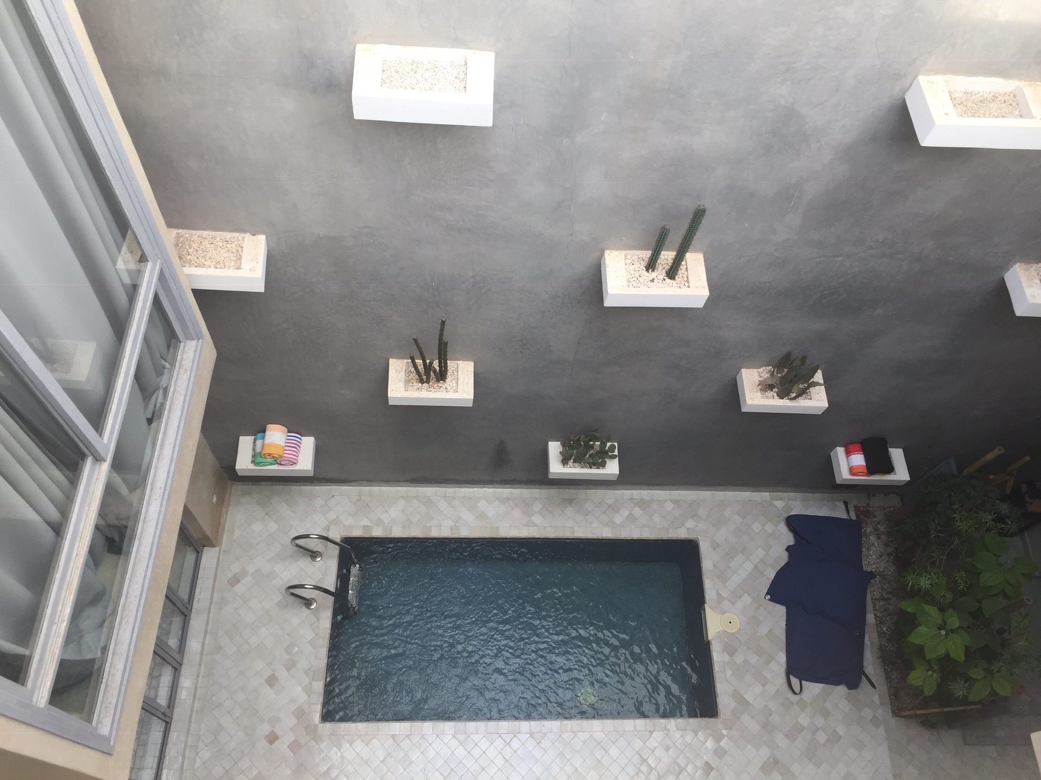 The riad itself wasn’t nearly as nice as the first one. It’s not that there was anything wrong with it, the bar had just been set too high. This one did have two pools, which was lovely. The one on the roof, as last time, was really a cold jacuzzi. In addition there was a larger heated pool in the centre of the riad on the main floor . Otherwise it was more dated and clearly used solely for guests, unlike the last one which was a second home for a couple and felt that way.