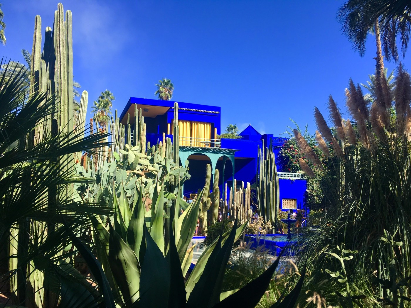 Not far from our riad, about a 15 min walk, is the Jardin Majorelle. French painter Jacques Majorelle (1886-1962) bought the first parcel of land in 1923, adding to it in later years. An amateur botanist he spent years adding to the plant life, eventually opening it to the public in 1947 to help cover the costs. A series of bad luck (divorce and car accidents) lead to the sale of the garden and his eventual death in 1962.