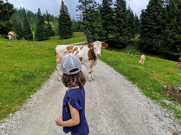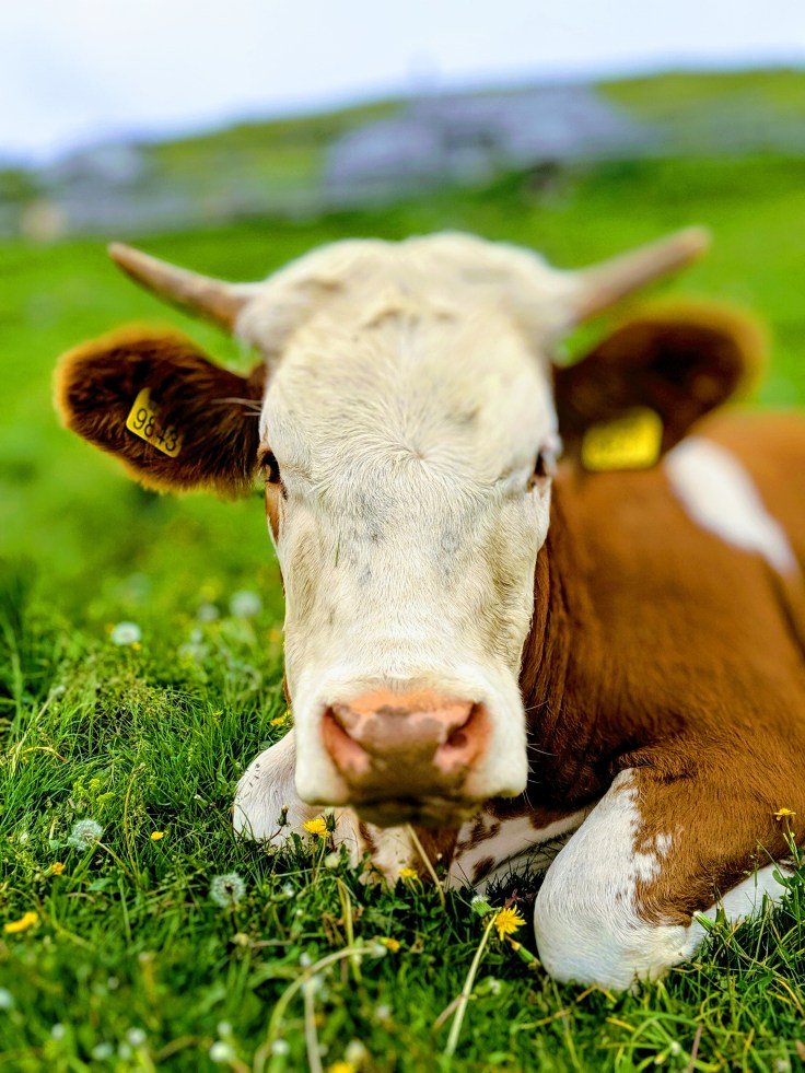 Velika Planina, Slovenia’s largest alpine meadow, is where the farmers move their animals, particularly cows, in the summer. Not surprisingly then, one thing you see a lot of along the way are cows.