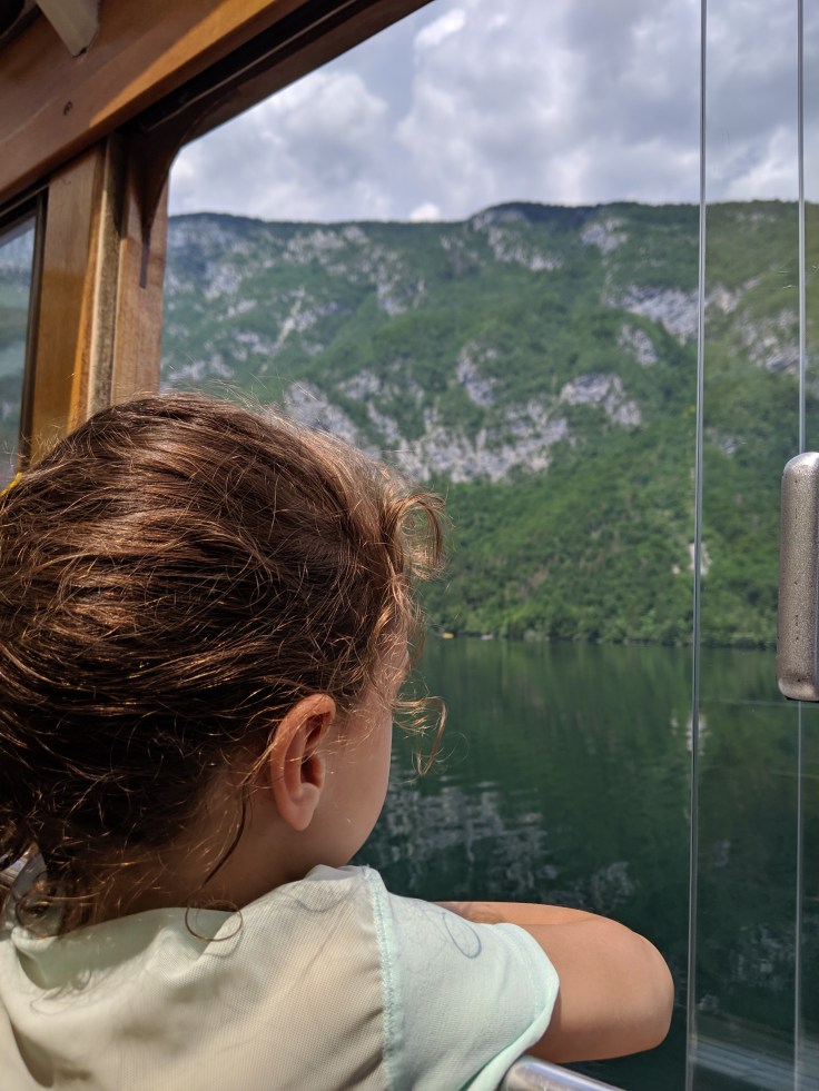 Domen had mapped out some longer walks and bike rides for us around Lake Bohinj but we opted for a more relaxed day. Instead of getting off the bus in Lake Bohinj we went the extra stop to the base of the cable car up to the Vogel ski resort. The views of the lake below were spectacular and walking onto the chairlift without skis, was a highlight for Ella.