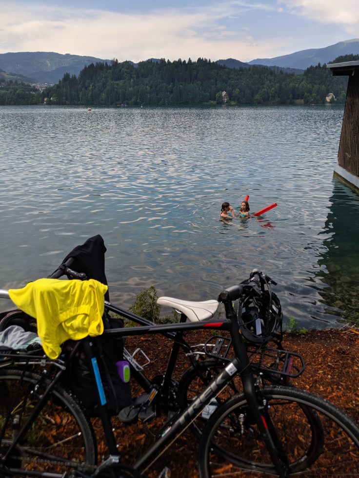 Back at the hotel, we grabbed the bikes one last time for a quick ride down to Lake Bled for a casual tour and swim in the lake.