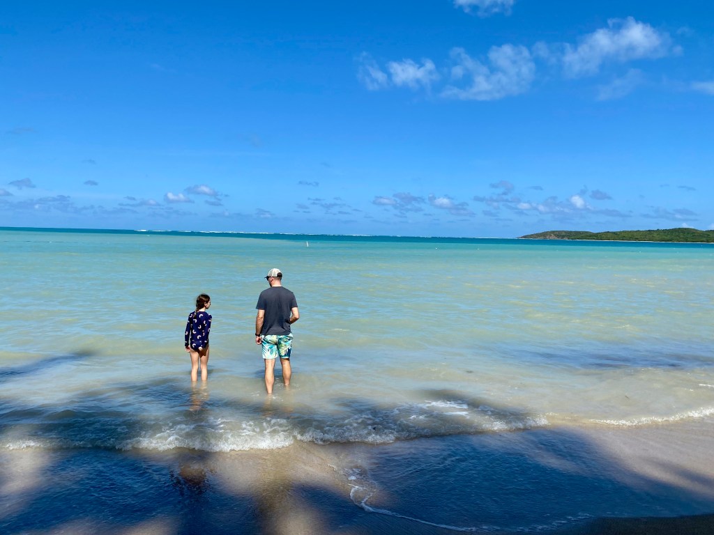 After a great afternoon at the beach, we settled in at our Airbnb and cleaned up before making our way to dinner at La Estación. The food was very good, though Ella was more interested in the cats that wandered by. Kolt and I had the BBQ platter described as being for a family. Needless to say, we left full and ready for sleep before another early morning catching the ferry to Culebra.