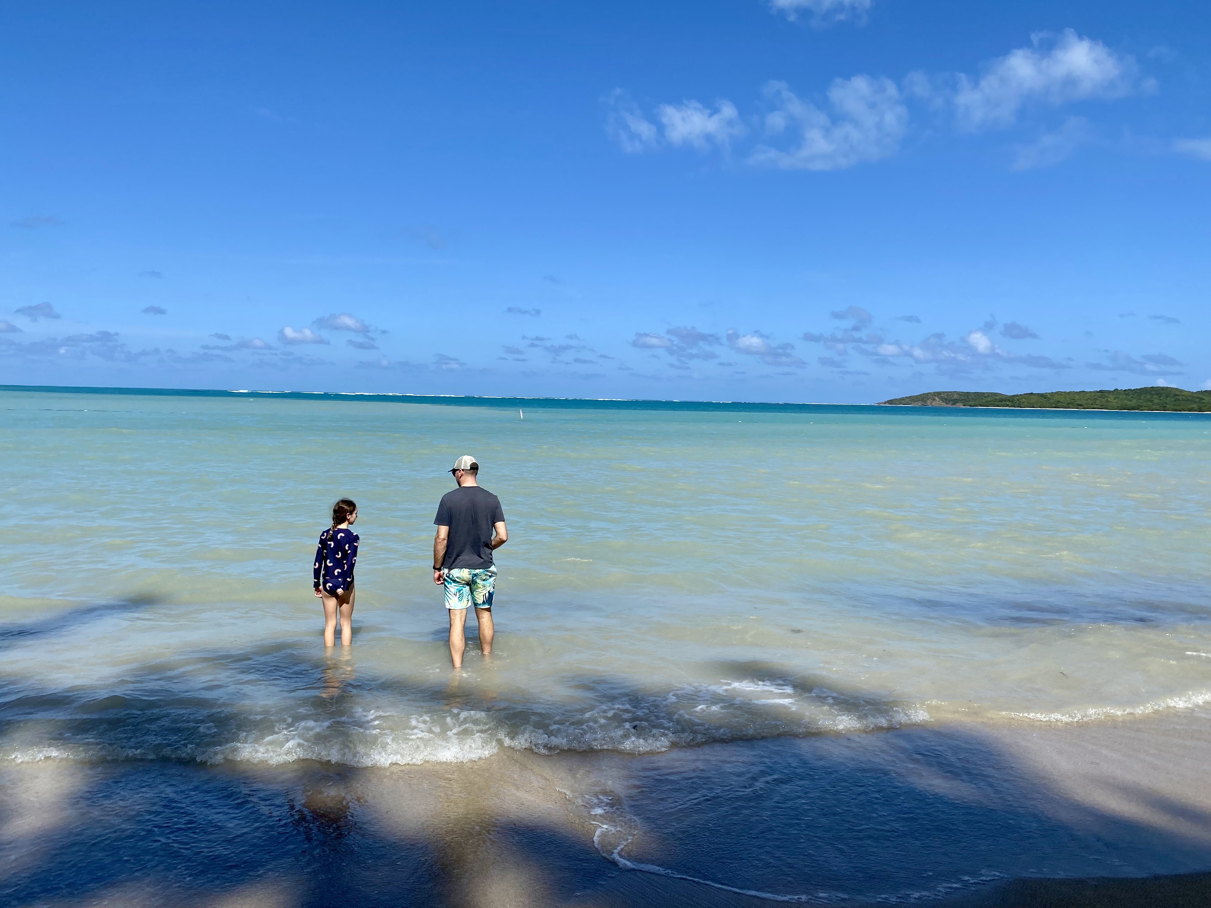 After a great afternoon at the beach, we settled in at our Airbnb and cleaned up before making our way to dinner at La Estación. The food was very good, though Ella was more interested in the cats that wandered by. Kolt and I had the BBQ platter described as being for a family. Needless to say, we left full and ready for sleep before another early morning catching the ferry to Culebra.